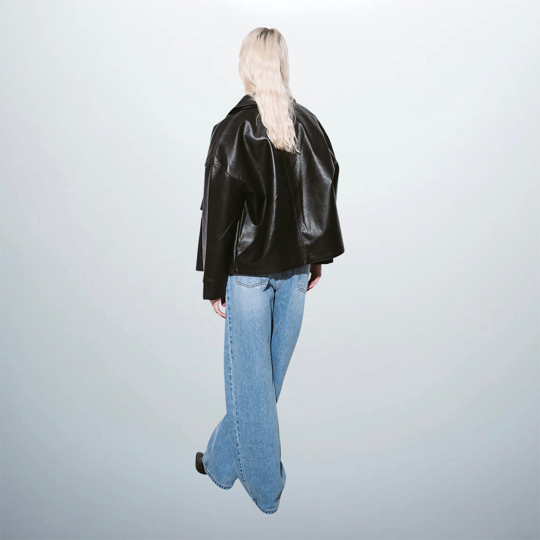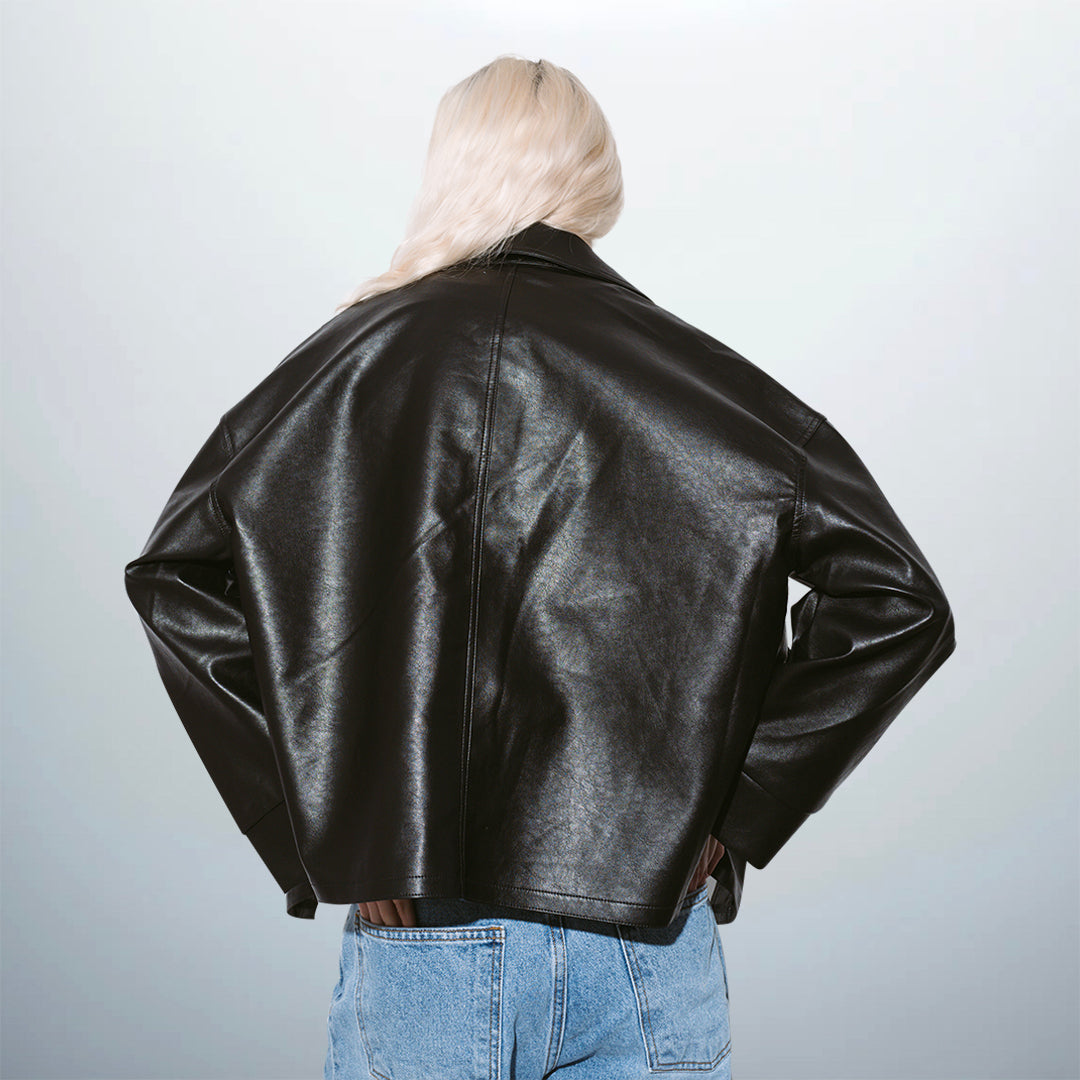 Its sleek design and exquisite attention to detail make it a wardrobe essential for those who seek a touch of sophistication in their everyday attire. The jacket's versatile nature allows it to be paired with anything from casual denim to elegant dresses, making it perfect for any occasion. Featured in a classic, mid-sized fit, it promises comfort and style. Maria, our model, is 1m72 and wears a size M, showcasing the jacket's flattering fit and effortless elegance. Make a statement with this timeless piece that's designed to impress.